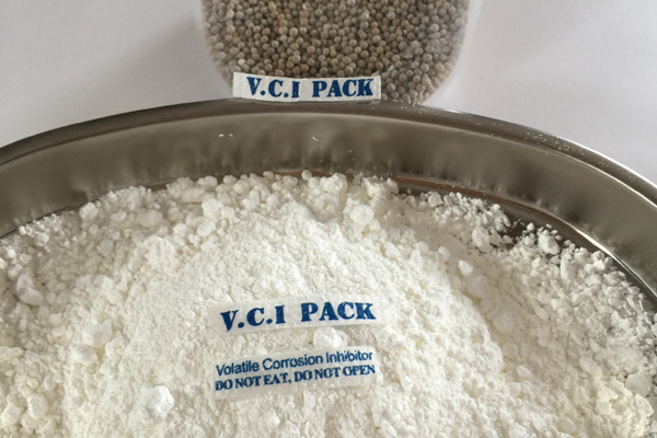 氣相防銹粉末多種特制的氣相緩蝕劑原料按一定配比均勻混合加工而成,具有水溶性,是一種新型的氣化性防銹材料。在密閉空間內,VCI經氣化揮發(fā)到金屬的每個角落,吸附在金屬表面形成致密保護膜層從而起到防銹的作用